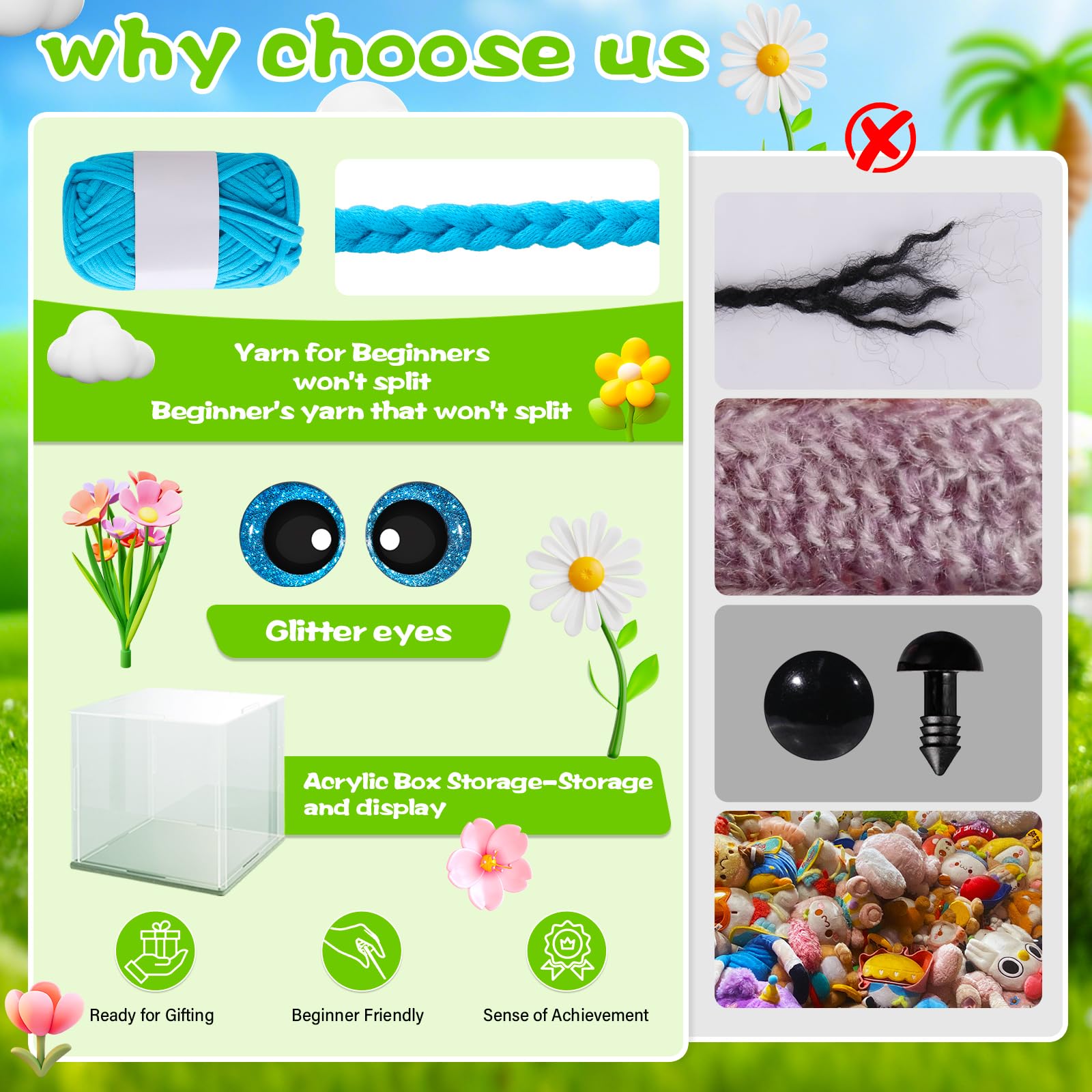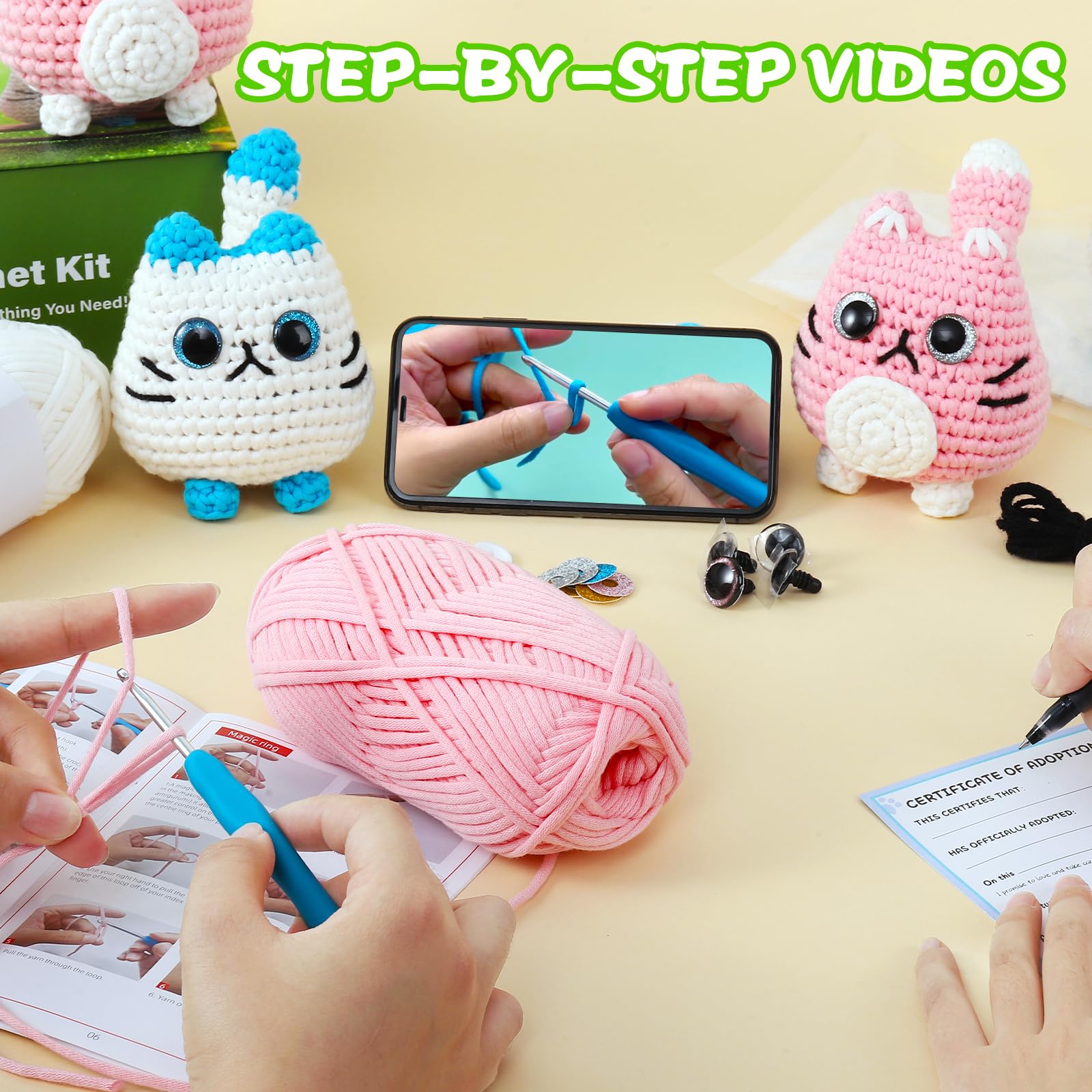 Das Herzstück dieses Sets sind die hochwertigen Garnmischungen in leuchtenden Blau- und Rosatönen, die Ihnen zusammen mit einer langlebigen Häkelnadel, Füllwatte, Sicherheitsaugen und einer Vielzahl bezaubernder Accessoires das nötige Werkzeug zum Herstellen von zwei einzigartigen Eulenfiguren bieten. Die enthaltenen Schritt-für-Schritt-Videoanleitungen und detaillierten Musteranweisungen sorgen für ein nahtloses Lernerlebnis und machen dieses Set zur perfekten Wahl für Häkelanfänger, die in die Welt der Amigurumi eintauchen möchten.